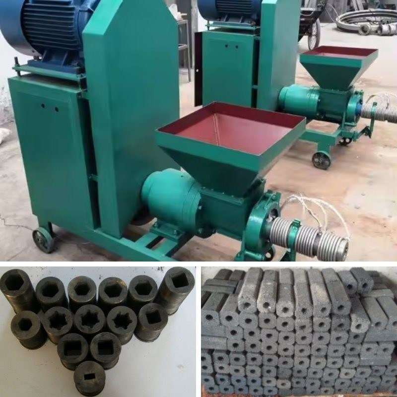 Charcoal briquette machine uses sawdust, crop straw, rice husks, bamboo cuts, etc. as raw materials. After being crushed by the wood chip crusher, a high-temperature and high-pressure zone is formed under the action of the spiral propeller and the heating ring to process the loose raw materials into hollow rods.This product has high density, small size and good flammability, and can replace firewood and coal.