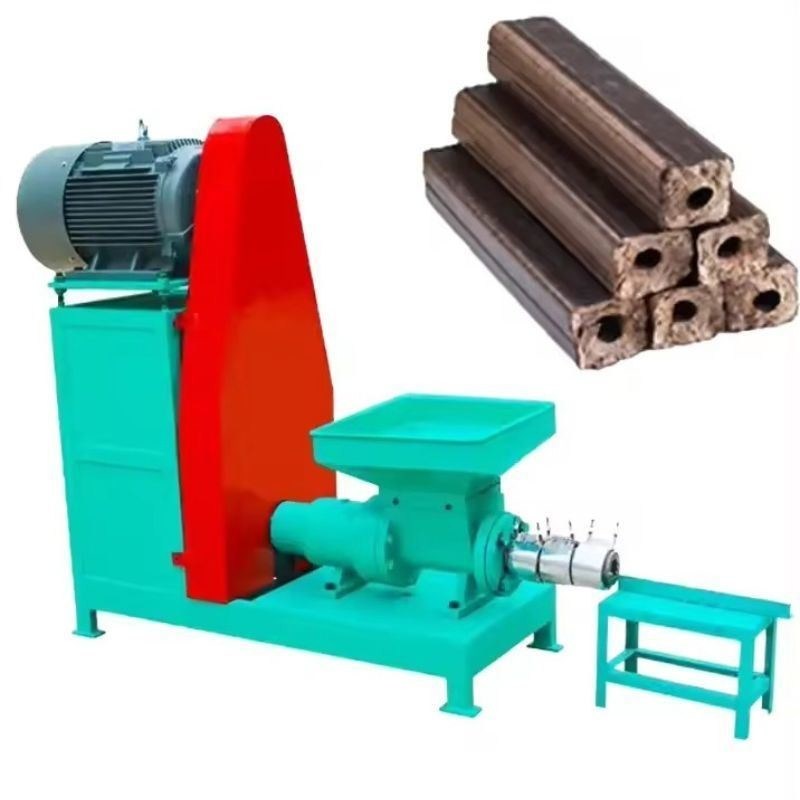 Charcoal briquette machine uses sawdust, crop straw, rice husks, bamboo cuts, etc. as raw materials. After being crushed by the wood chip crusher, a high-temperature and high-pressure zone is formed under the action of the spiral propeller and the heating ring to process the loose raw materials into hollow rods.This product has high density, small size and good flammability, and can replace firewood and coal.