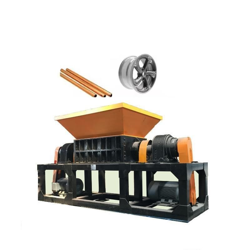 Scrap Metal Shredder is one metal pre-shredder, processing most heavy waste metal, such as whole car, aluminum/iron bundles, engine, thick iron plate, metal drum, motorcycle frame, etc.Double shaft shredder controlled by PLC through automatic detection, alarm and overload protection, can adjust and control the feeding quantity automatically. It will automatically reversal when the motor pressure exceeds the set rated pressure, then automatically forward into normal crushing action.